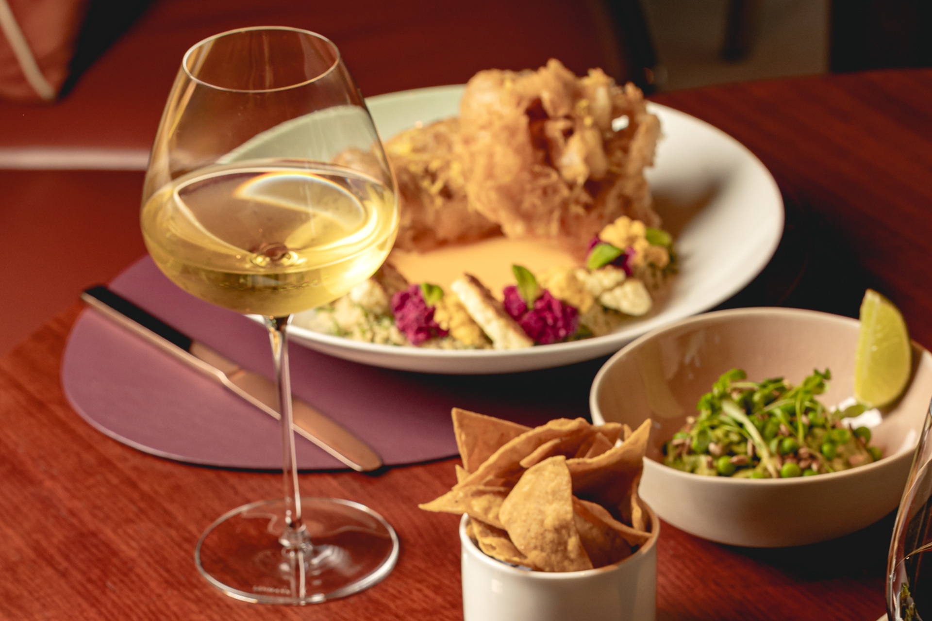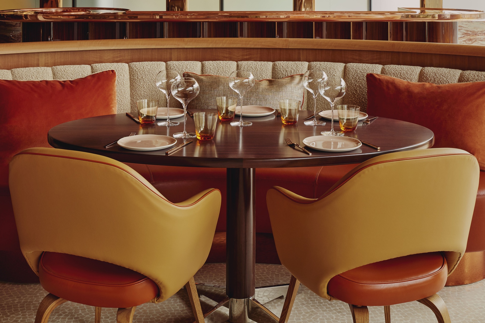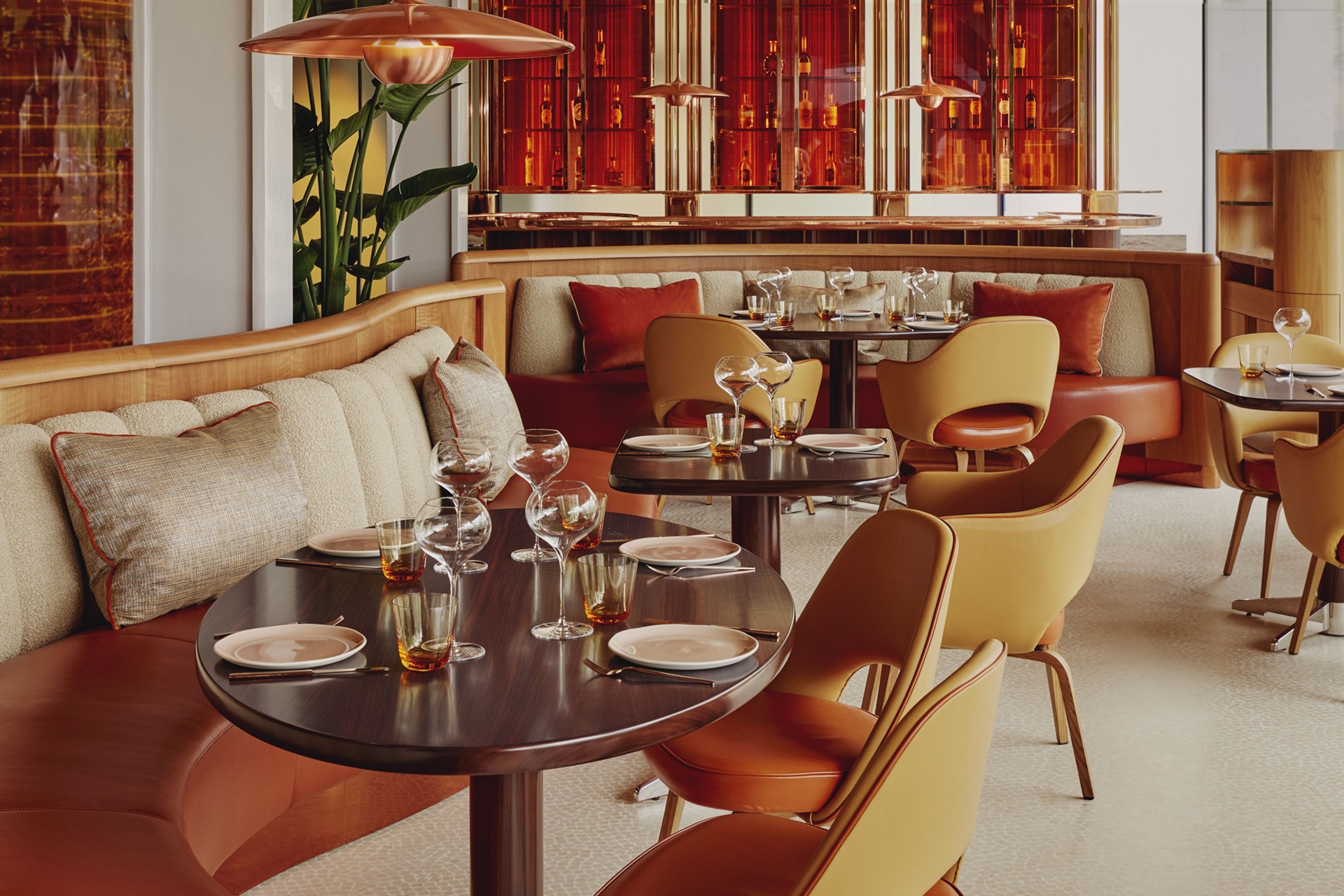 Designed by Rémi Tessier and adorned with works by Damien Hirst, the celestial dining space hums with movement and modernity. Sleek glass, warm leather, and ambient light offer a quietly glitzy backdrop for Jean-Georges Vongerichten’s first abc venture outside New York — and one of the most exciting arrivals on London’s culinary scene.