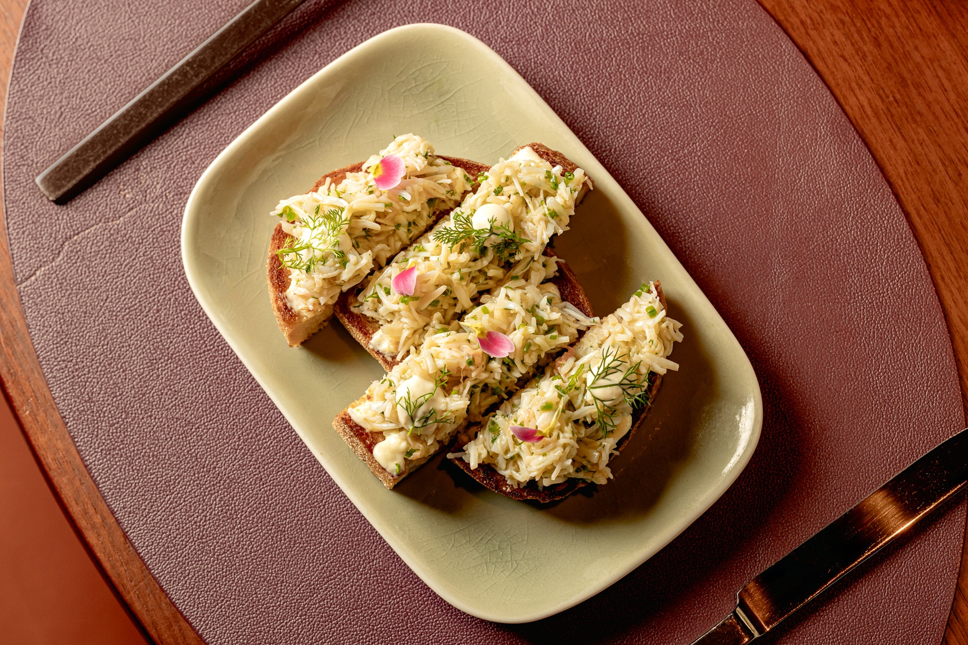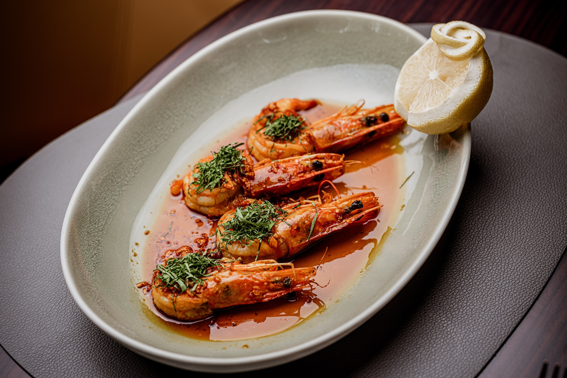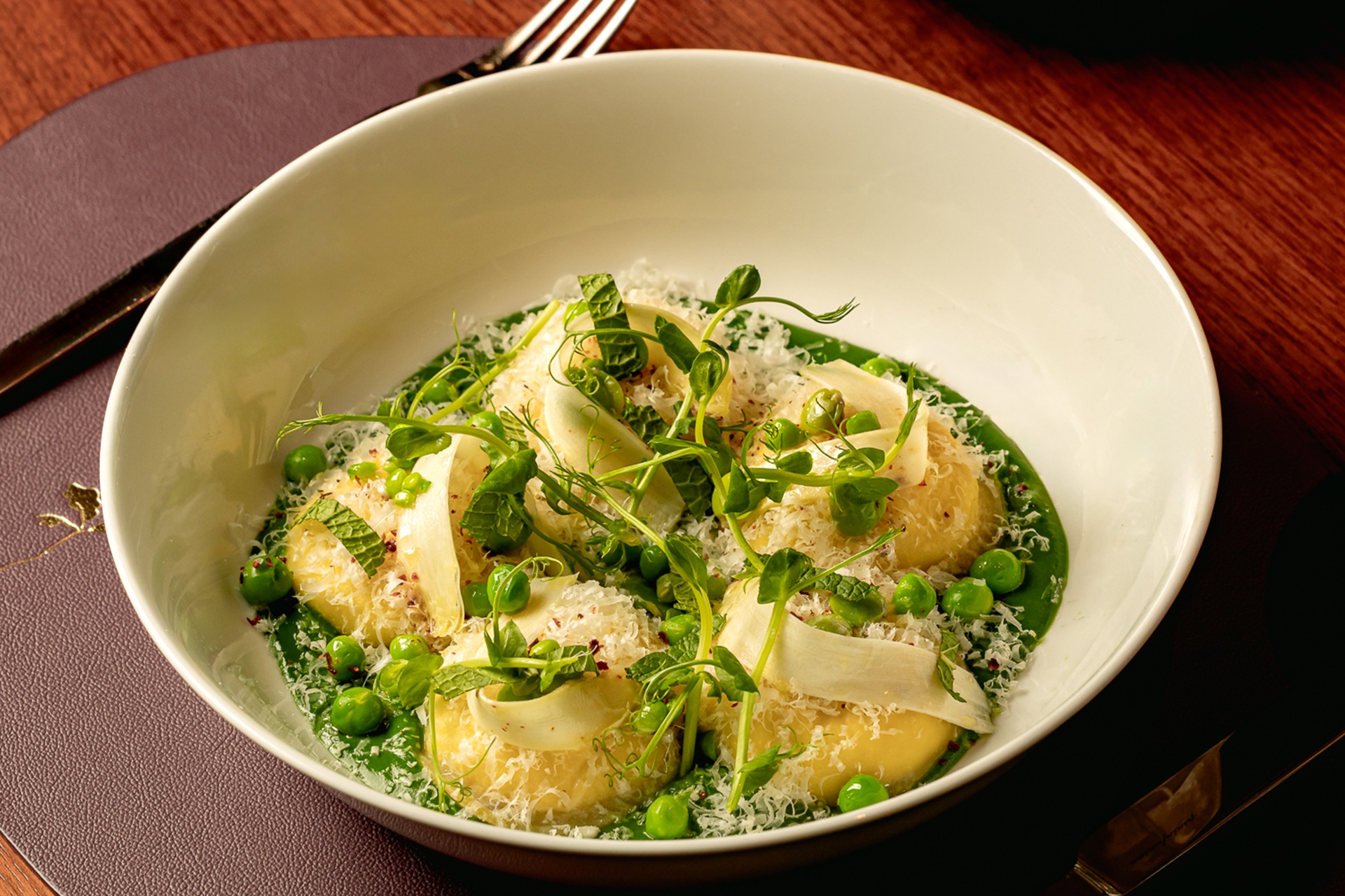 Designed by Rémi Tessier and adorned with works by Damien Hirst, the celestial dining space hums with movement and modernity. Sleek glass, warm leather, and ambient light offer a quietly glitzy backdrop for Jean-Georges Vongerichten’s first abc venture outside New York — and one of the most exciting arrivals on London’s culinary scene.
