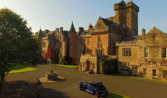 An intimate castle hotel near Edinburgh in the beautiful Scottish Borders. Former Scottish Baronial castle, Cringletie located near Peebles is approached via a winding single-track road where an air of tranquillity descends. A pretty, pale pink sandstone building with large original, astragalled sash windows and romantic turrets.