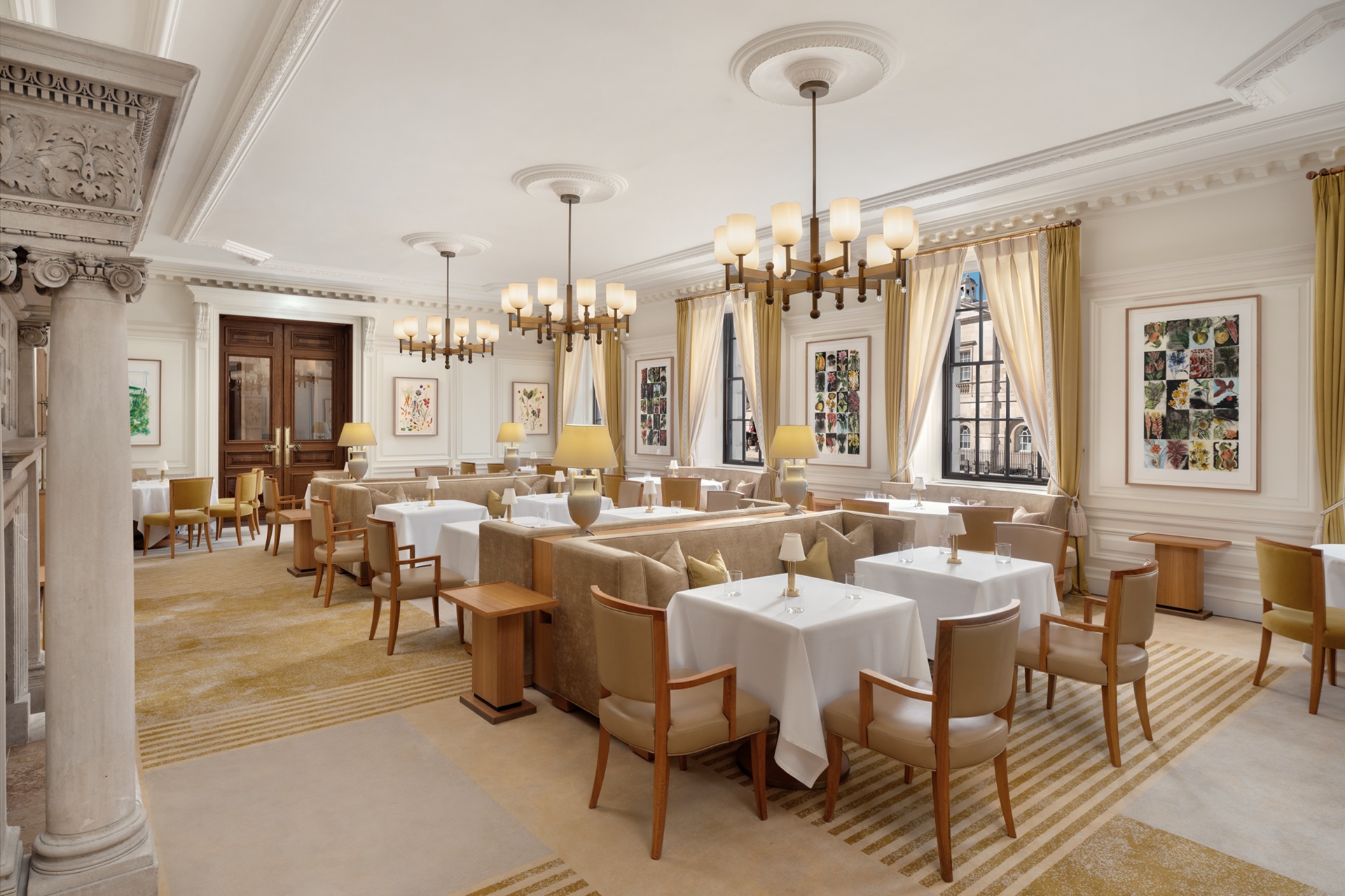 The dining room blends the grandeur of the Old War Office with a calm, contemporary aesthetic. Window tables offer views onto Whitehall’s grand thoroughfare, where daily pageantry provides a subtle reminder of the building’s ceremonial past.