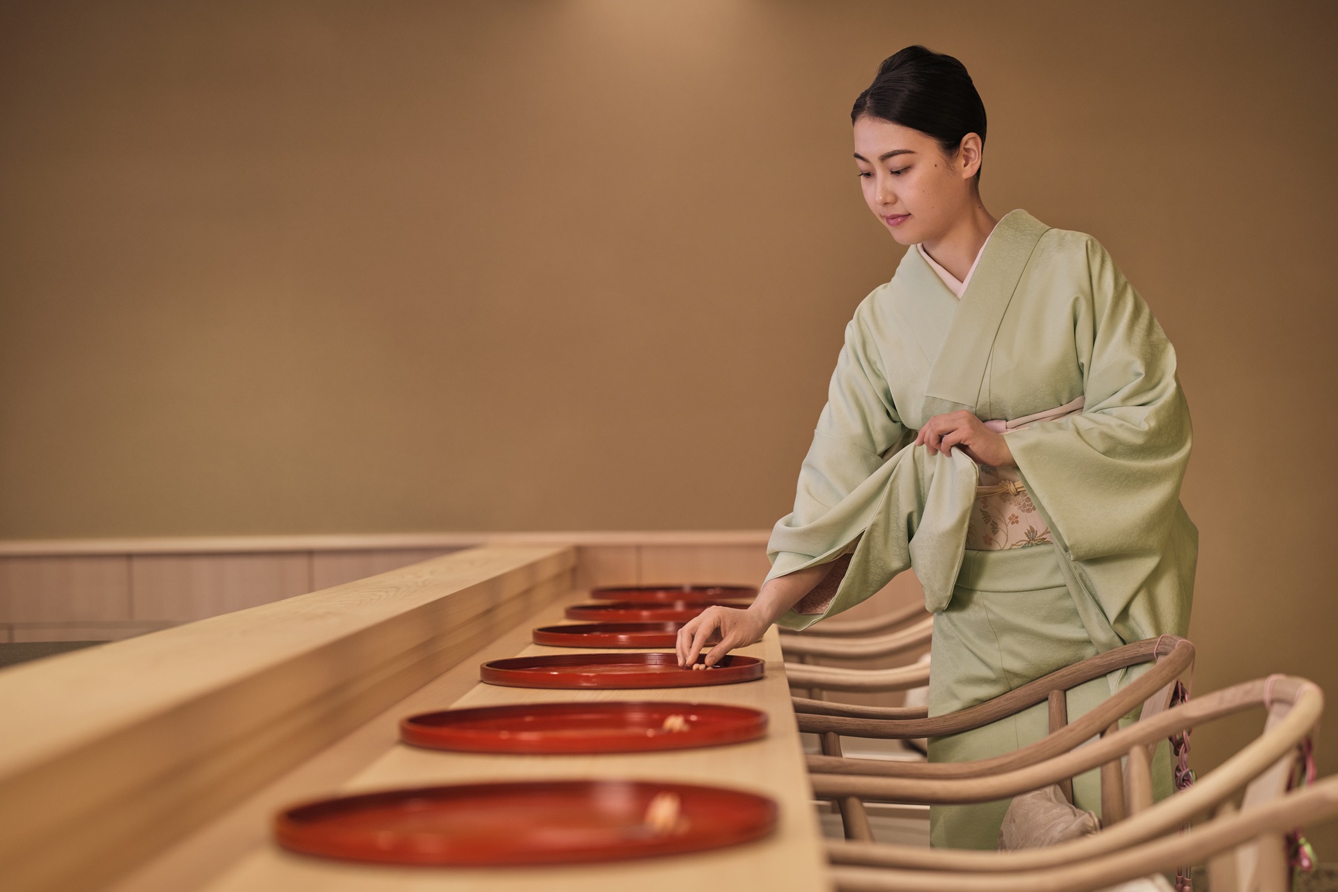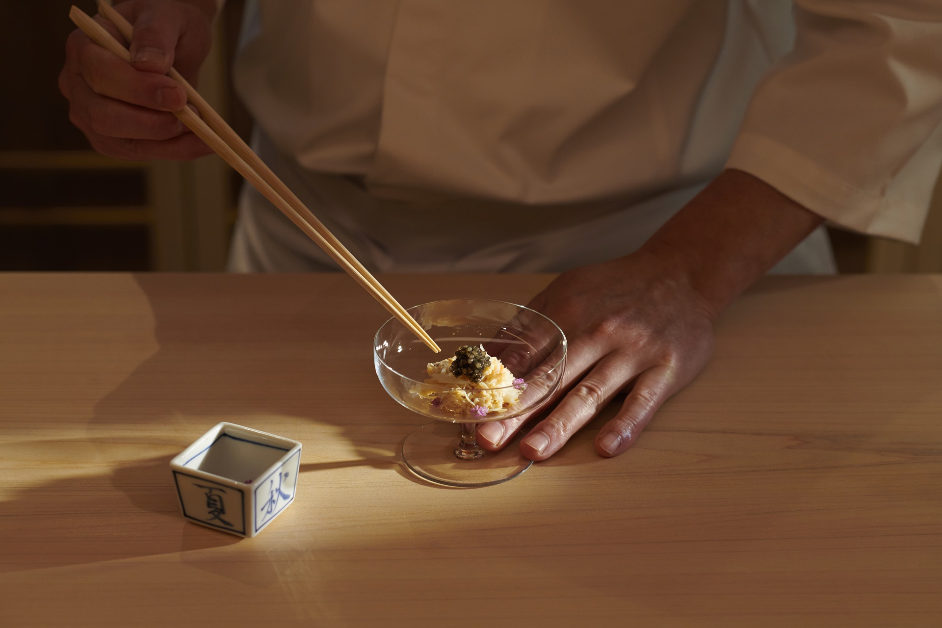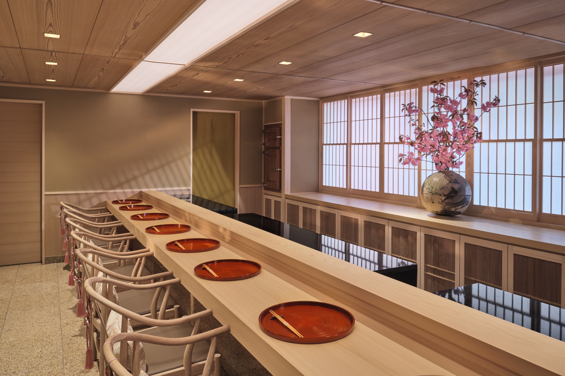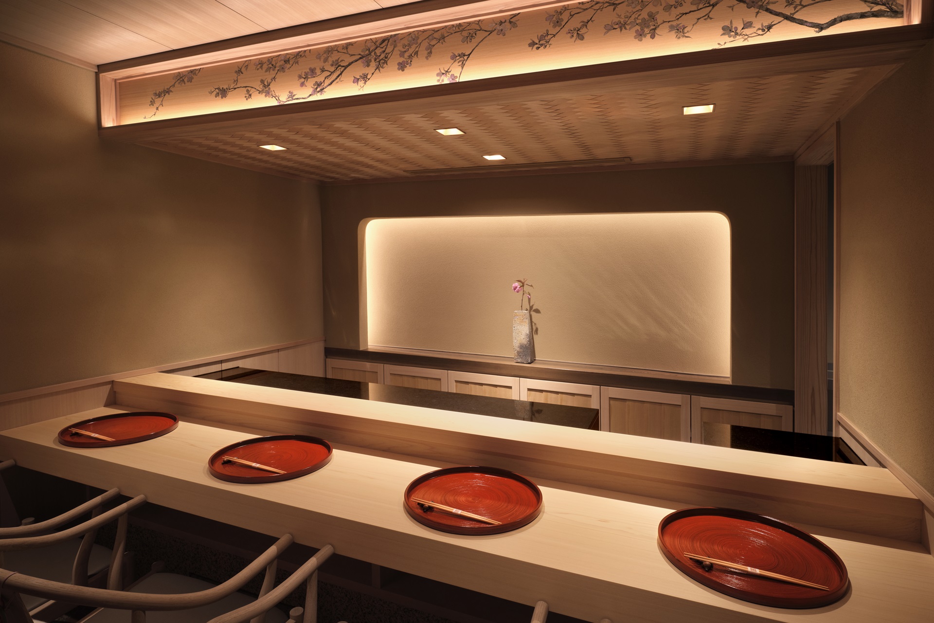 Every element of the interior and experience has been thoughtfully curated to embody the spirit of traditional Tokyo sushi restaurants. The restaurant's bespoke design provides the perfect setting for a traditional omakase experience at either the nine-person counter or the adjacent four-person counter within a private dining room.