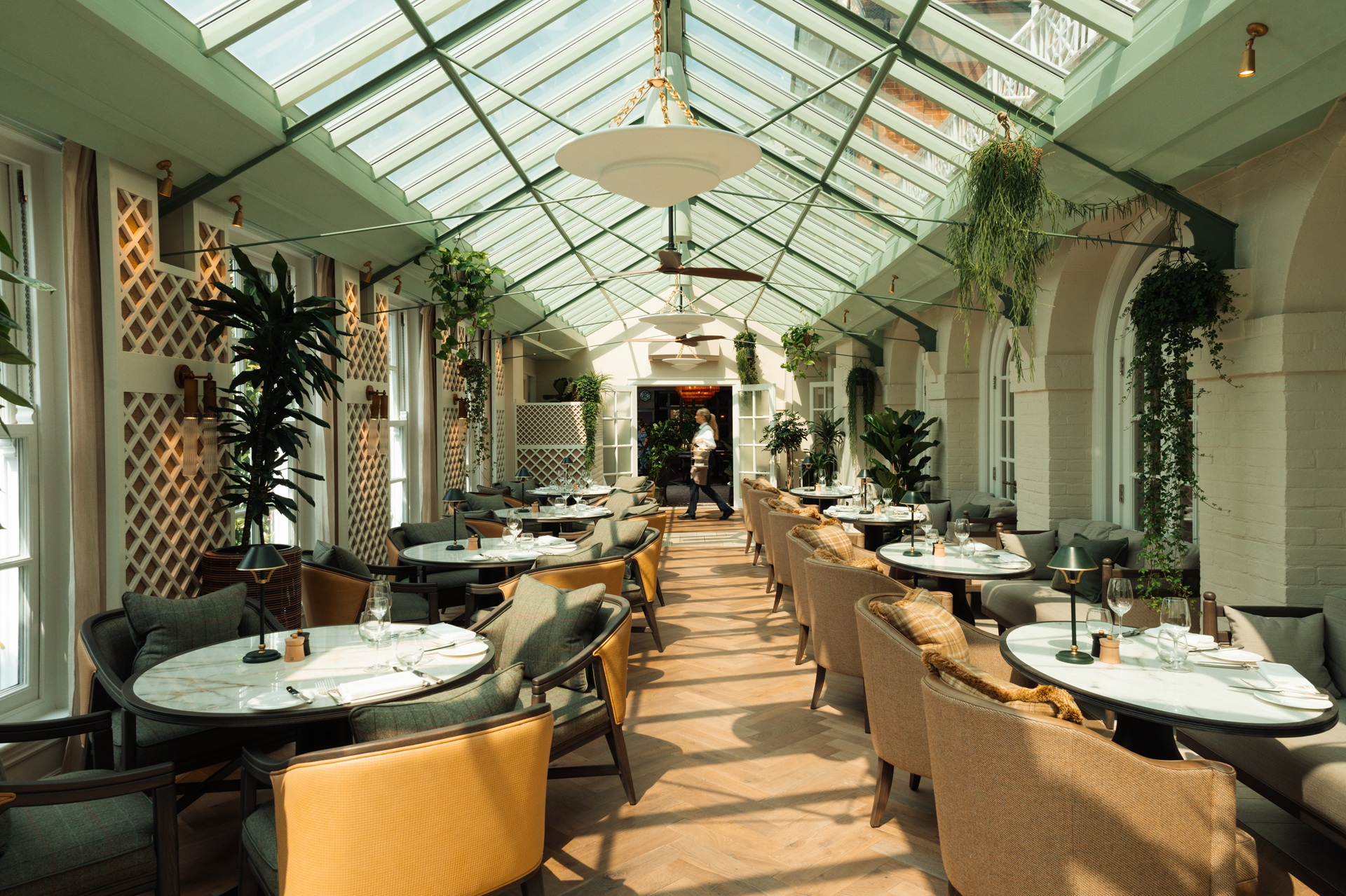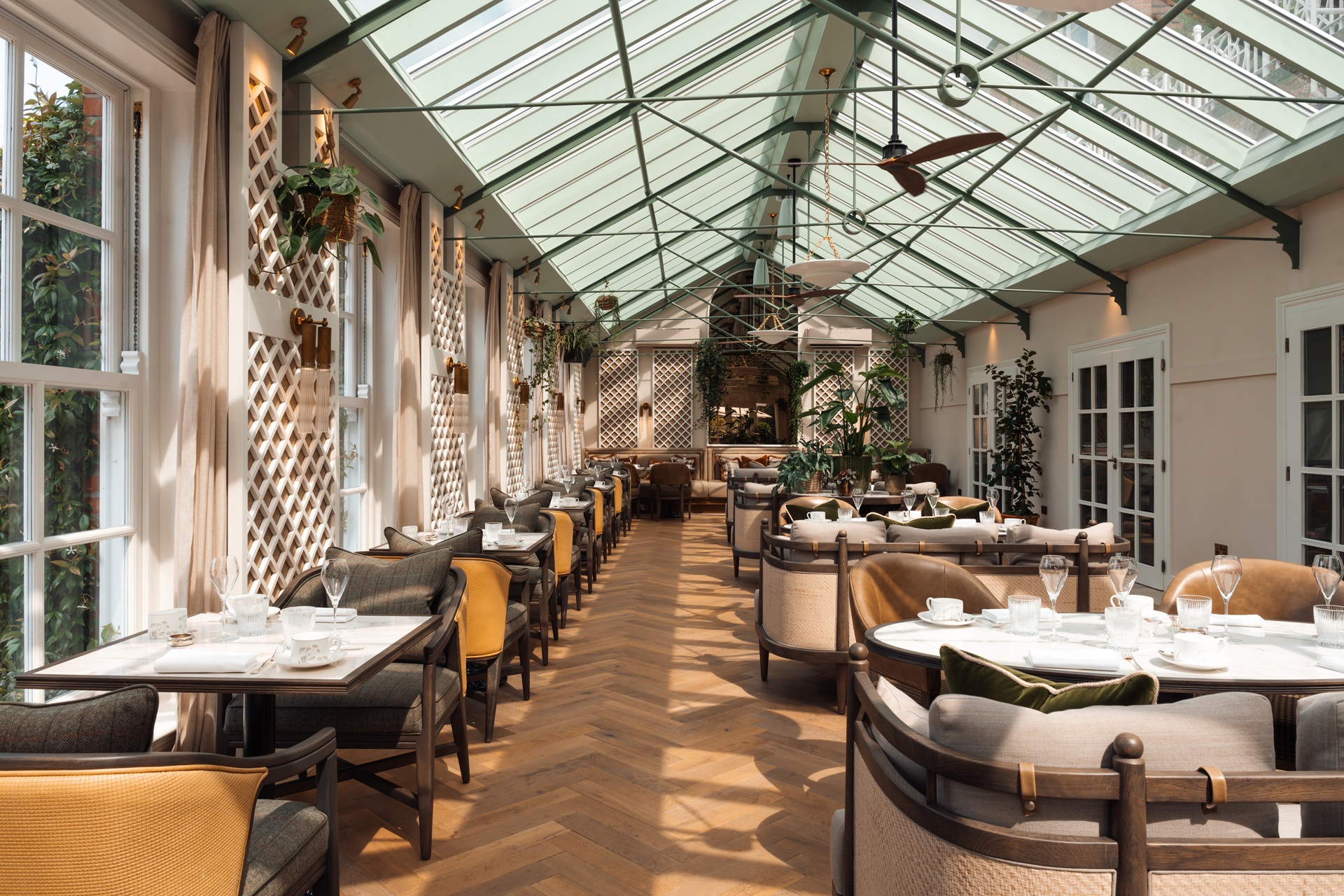As part of Chewton Glen's exciting rebrand, the Garden Room has been reimaged as a light-filled haven, reminiscent of a contemporary orangery. Timber floors, trellises, and soft, tactile furnishings create a gentle embrace, while dappled light plays across the room by day and settles into a warm, welcoming glow by night.