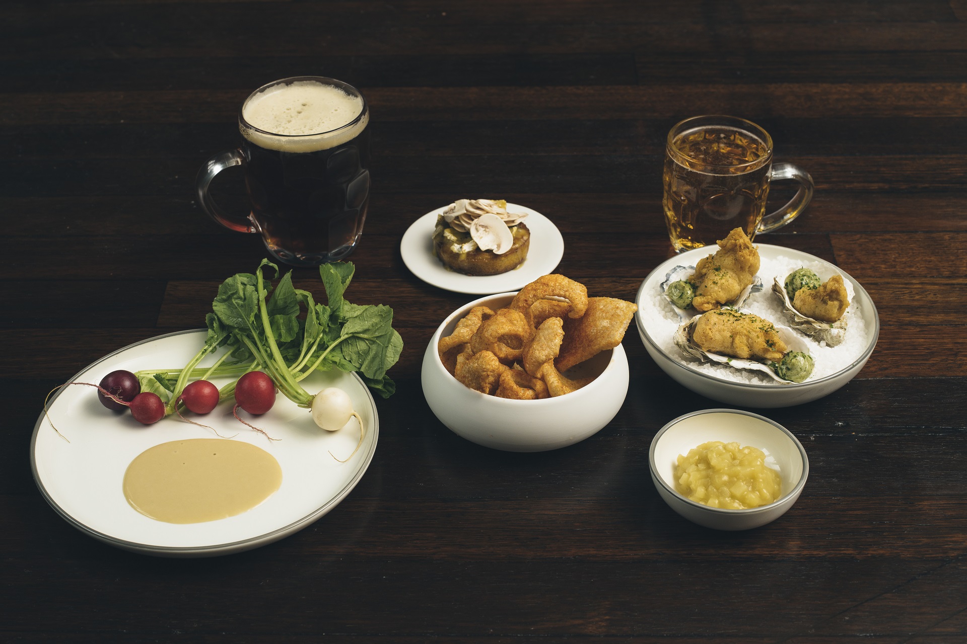 The menus celebrate the British Isles: Snacks are a selection of foodie wants including beer-battered native oysters with seaweed mayonnaise and the much-loved pork scratching being given a contemporary overhaul, to become pork crackers with smoked paprika salt: An ever changing range of sharing dishes are on offer with tomahawk steak, roasted whole turbot and whole roasted heritage cauliflower: Sunday lunch ranges from meat, fish and vegetarian choices with classic desserts; The dining menu features traditional dishes but with a modern twist, so fish and chips, featuring the addition of atomised vinegar spray, alongside several beef options: such as the salt chamber aged fillet, as well as a Trenchmore Farm Sussex wagyu bavette, all served with roasted onion, triple cooked chips and a house-made “bordelaise sauce”.