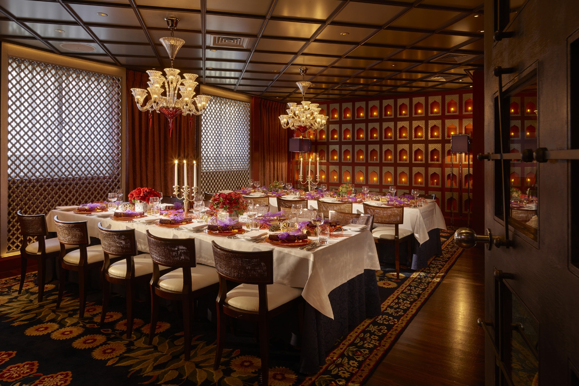 The décor—luxurious, chic, and evocative—pays tribute to the restaurant’s royal heritage, with interiors inspired by the opulence of 1920s Maharaja palaces. Each dining space offers its own unique atmosphere: The Regency Room exudes eclectic grandeur, marked by a display of artefacts and period dress at its entrance; The Verandah Room is light-filled and lush with greenery; while The Paisley Room’s rich velvets and draped fabrics most directly evoke Veeraswamy’s illustrious past.